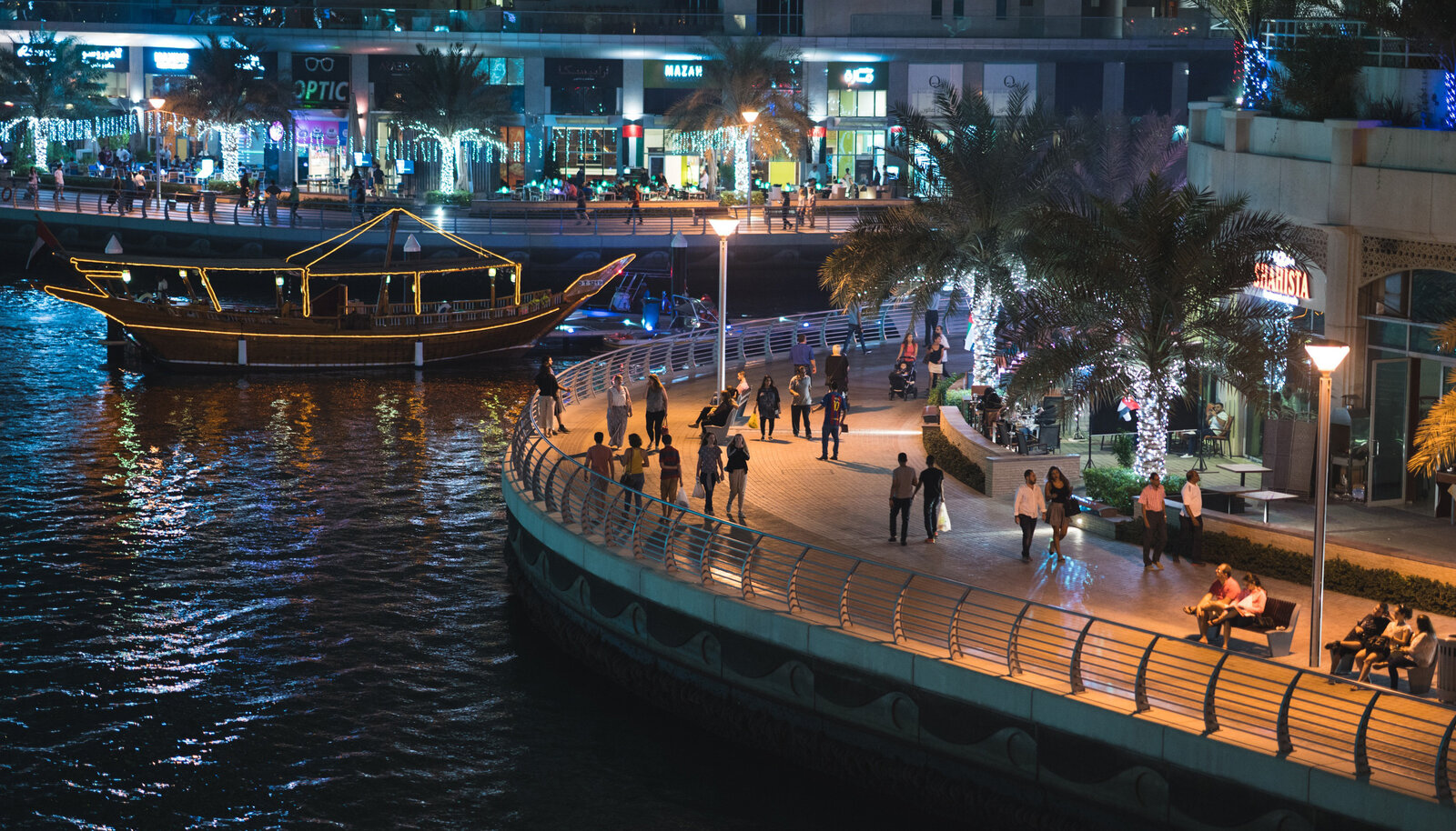 In the coastal district Jumeirah Beach Residence you will find the popular beach, aptly named The Beach, opposite The Walk. The promenade itself has more than 70 shops and restaurants offering Arabic and Greek cuisines, as well as pastry shops. The residential sector includes a number of cafes, green areas, large playgrounds and boulevards.