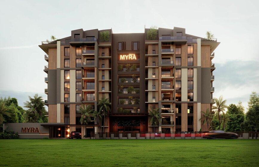 El proyecto Myra Taş Residence, situado en el distrito de Altyn Tash, en Antalya, a 3 km del mar, se distingue por su arquitectura moderna y su ubicación.