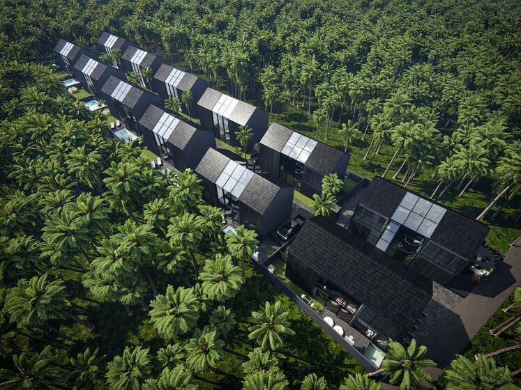 Il y a 4 villas disponibles à l'achat dans le complexe résidentiel Garden Villa II Ubud, chaque maison a une surface habitable totale d'environ 120 m². Chacune d'entre elles est conçue avec 2 et 3 chambres. Grâce aux fenêtres allant du sol au plafond, la lumière naturelle est omniprésente à l'intérieur. Le promoteur propose une rénovation clé en main avec des meubles souples et des valises, des matelas, des textiles et de la décoration. Pendant la phase de construction de Garden Villa II Ubud, les prix des villas sont les plus avantageux.