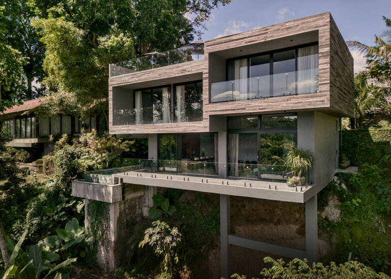 The architectural concept of THE NEST HOTEL project was designed by Andra Matin, Indonesia's most influential and acclaimed architect, whose work represents the country at leading global architectural forums and receives international awards. It comprises 40 design apartments, 21 villas, a restaurant, wellness facilities, fitness centers, and other infrastructure. The site, surrounded by water on three sides, ensures complete privacy and natural integration with the environment. Significant attention was paid to creating viewing decks, so every residence offers unique panoramic views of the valleys and jungles of Ubud.
