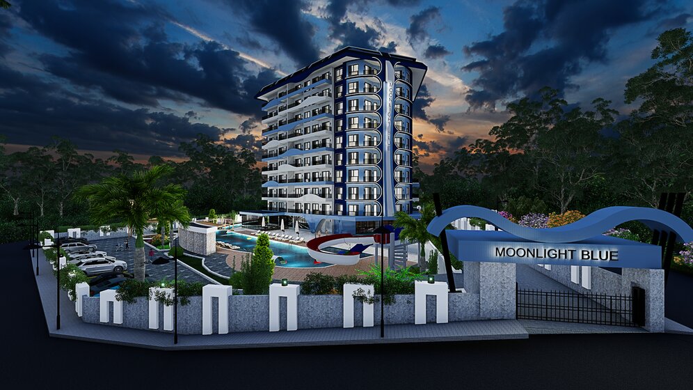 Ce projet se trouve à seulement 700 mètres du centre d'Avsallar, à 15 kilomètres du centre d'Alanya et à 650 mètres de la plage de sable, la principale attraction d'Avsallar. La résidence Moonlight Blue propose des appartements de 1 et 2 chambres ainsi que des duplex de 2 et 3 chambres. L'infrastructure du projet "Moonlight Blue Residence" comprend : hammam, sauna, centre de fitness, restaurant, aires de jeux pour enfants, piscine extérieure, piscine intérieure, parking, système de vidéosurveillance dans tout le complexe, système de mot de passe pour l'entrée dans le complexe, ascenseurs, générateur d'électricité de secours.