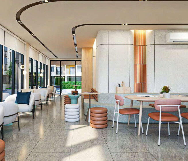 В основе архитектурного облика — конструкции, часть из которых возведена не под прямым углом. Фасады преимущественно серого и белого цветов с асимметричными акцентами. В Chapter One All Ramintra войдут 3 корпуса высотой 8 этажей, на крыше одного из них появится общественная территория с открытым бассейном. Общее число апартаментов в комплексе — 624. Клиентам предлагаются 1–2-комнатные варианты планировок, площадью от 24 до 39,8 м². На этапе строительства купить апартаменты в Chapter One All Ramintra можно по выгодной цене.