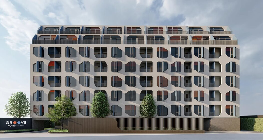 Groove Muse Ratchada 7, a new pop-art condominium that provides 24-hour lifestyle centers under the concept of "Liberate Amused Life," bringing perfection modernity to be displayed in the building structure and offering 7 different types of rooms in a private living environment, as well as a variety of facilities such as a lounge, a cafe, a mini-theatre, working pods, a meeting room, a swimming pool, and a strict security system. The project is located in Soi Ratchada 7, just 2 minutes away from Thailand Cultural MRT